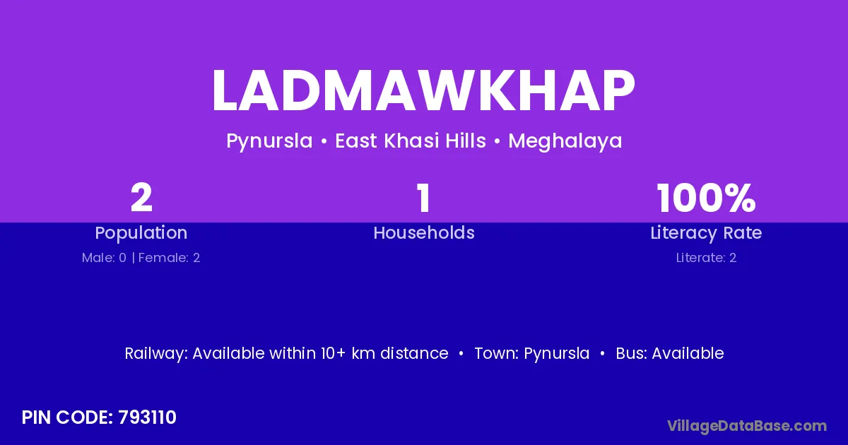 Ladmawkhap village has a total population of 2 people, of which 0 are males and 2 are females.