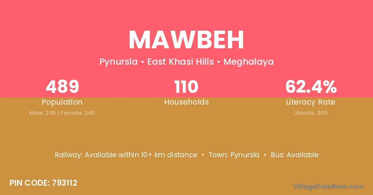 Mawbeh village has a total population of 489 people, of which 249 are males and 240 are females.