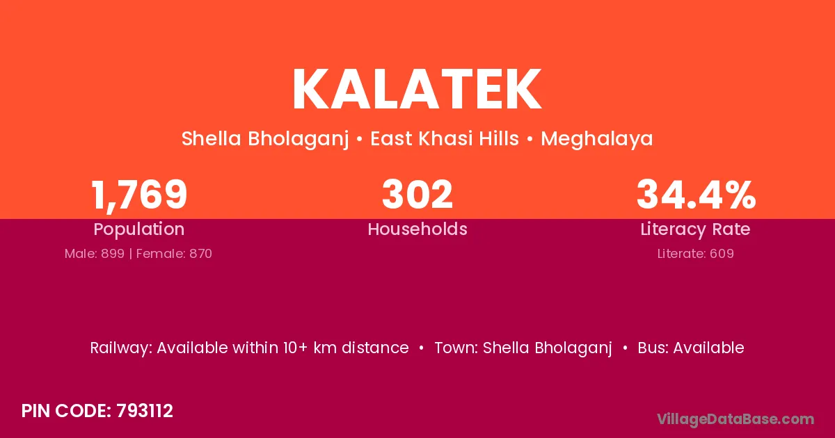 According to Census 2011 information, the village code of Kalatek village is 793112.