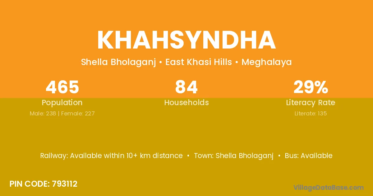 According to Census 2011 information, the village code of Khahsyndha village is 793112.