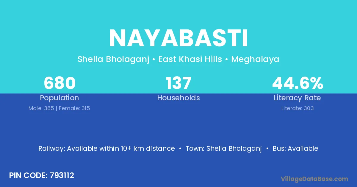 According to Census 2011 information, the village code of Nayabasti village is 793112.