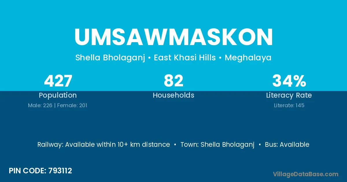 Shella Bholaganj is the nearest town to Umsawmaskon village for major economic activities