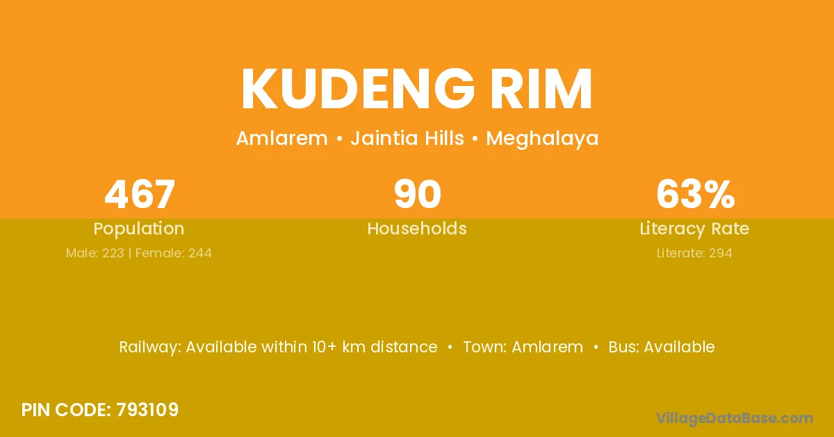 Amlarem is the nearest town to Kudeng Rim village for major economic activities