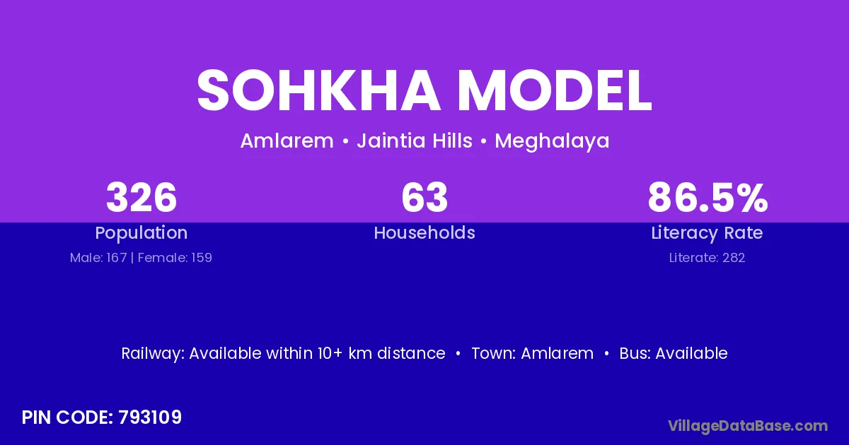 According to Census 2011 information, the village code of Sohkha Model village is 793109.