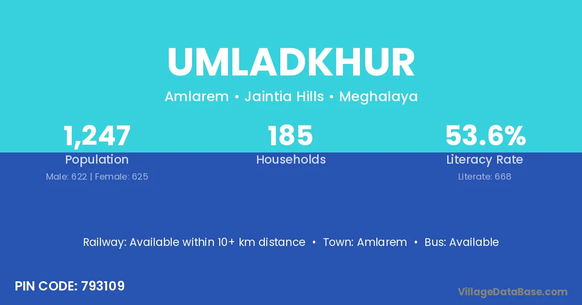Amlarem is the nearest town to Umladkhur village for major economic activities