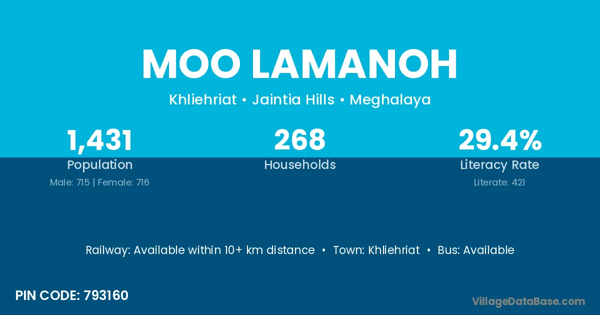 The literacy rate of Moo Lamanoh village is 29.42%. Male literacy stands at 29.51% and female literacy at 29.33%.