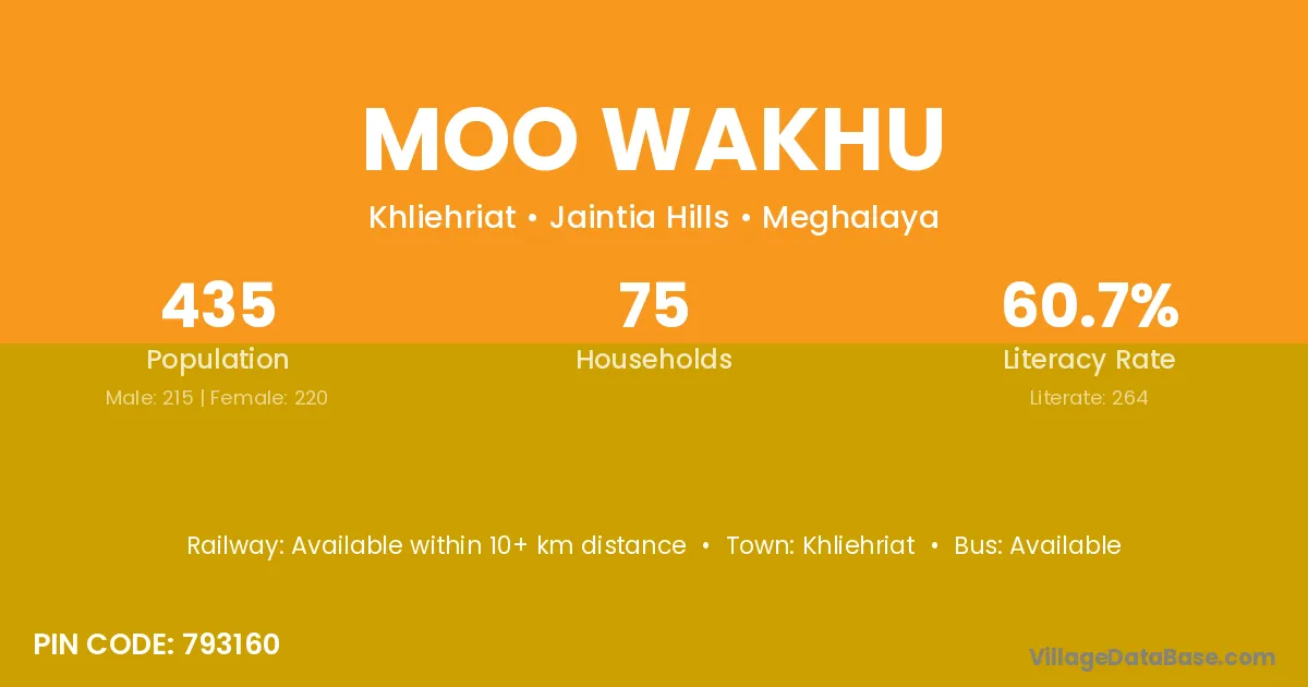Moo Wakhu village has a total population of 435 people, of which 215 are males and 220 are females.