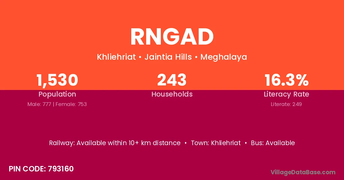Rngad village has a total population of 1,530 people, of which 777 are males and 753 are females.