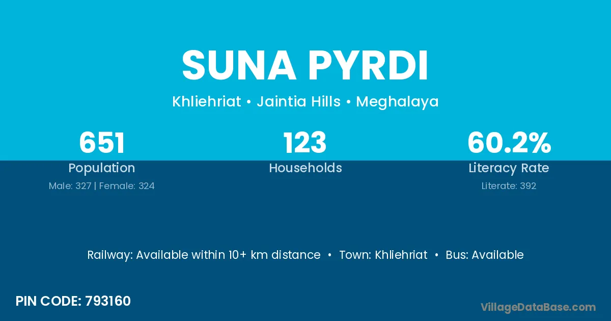Khliehriat is the nearest town to Suna Pyrdi village for major economic activities
