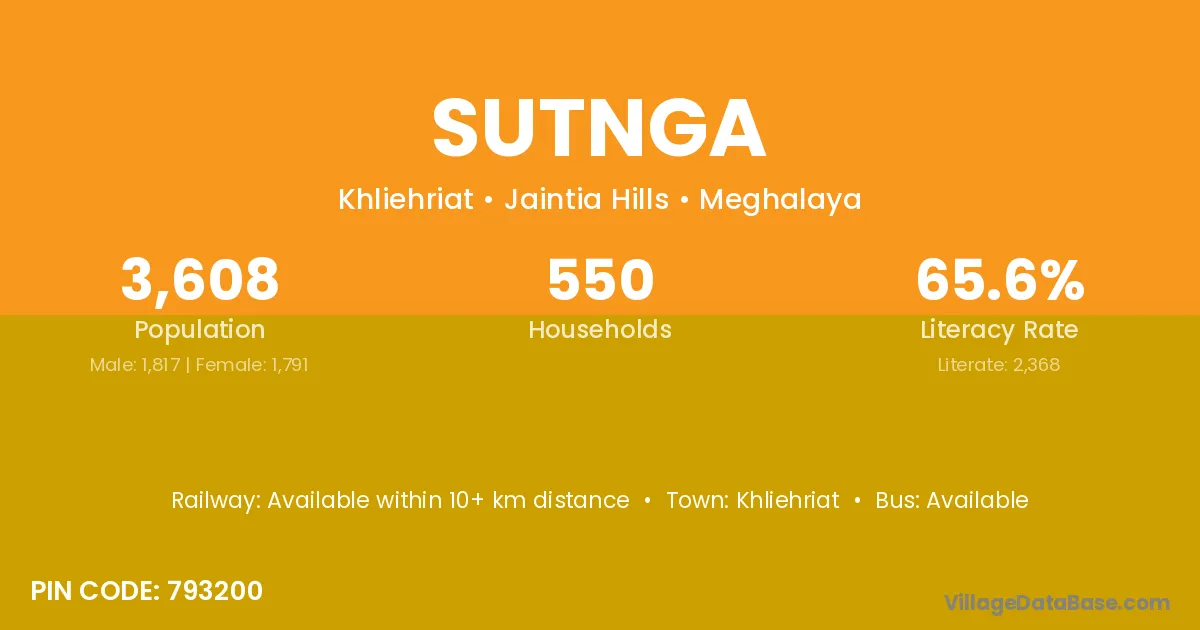 According to Census 2011 information, the village code of Sutnga village is 793200.