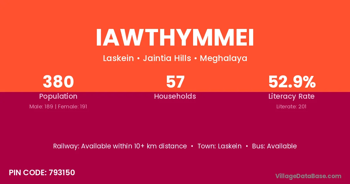 Iawthymmei village is located in the Laskein Subdivision of the Jaintia Hills district in Meghalaya .