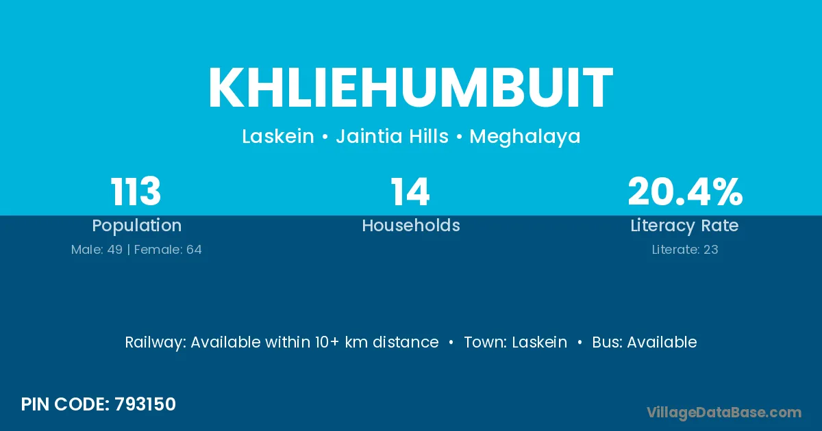 Khliehumbuit village has a total population of 113 people, of which 49 are males and 64 are females.