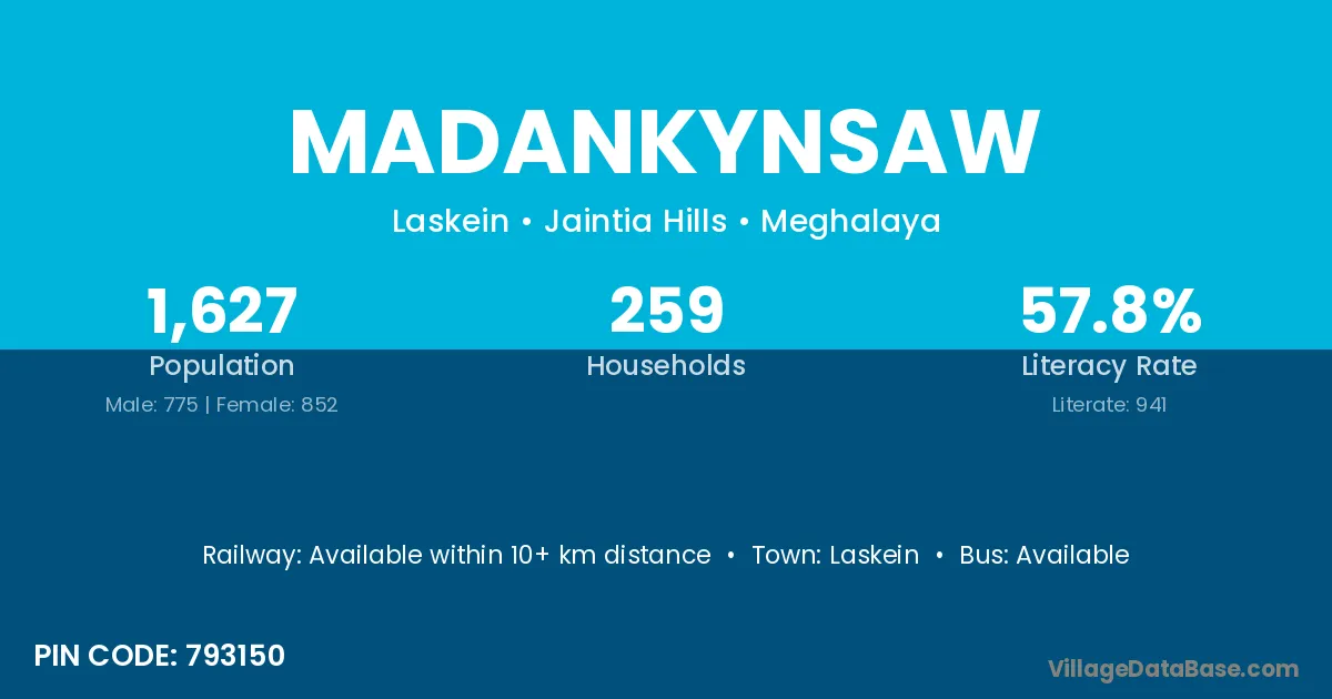 Laskein is the nearest town to Madankynsaw village for major economic activities