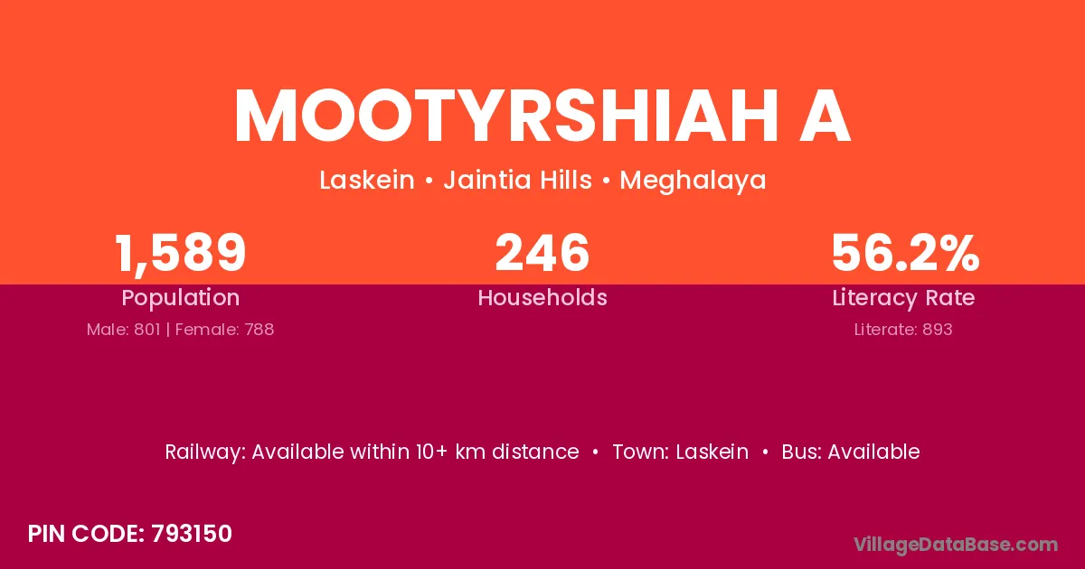 Laskein is the nearest town to Mootyrshiah A village for major economic activities