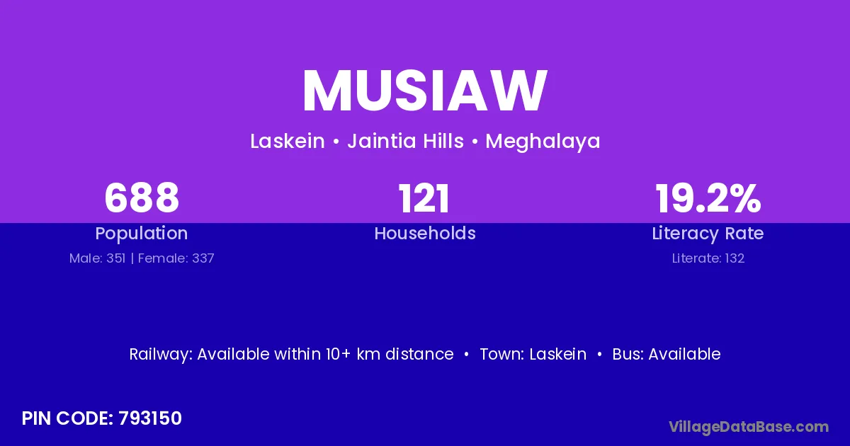 According to Census 2011 information, the village code of Musiaw village is 793150.