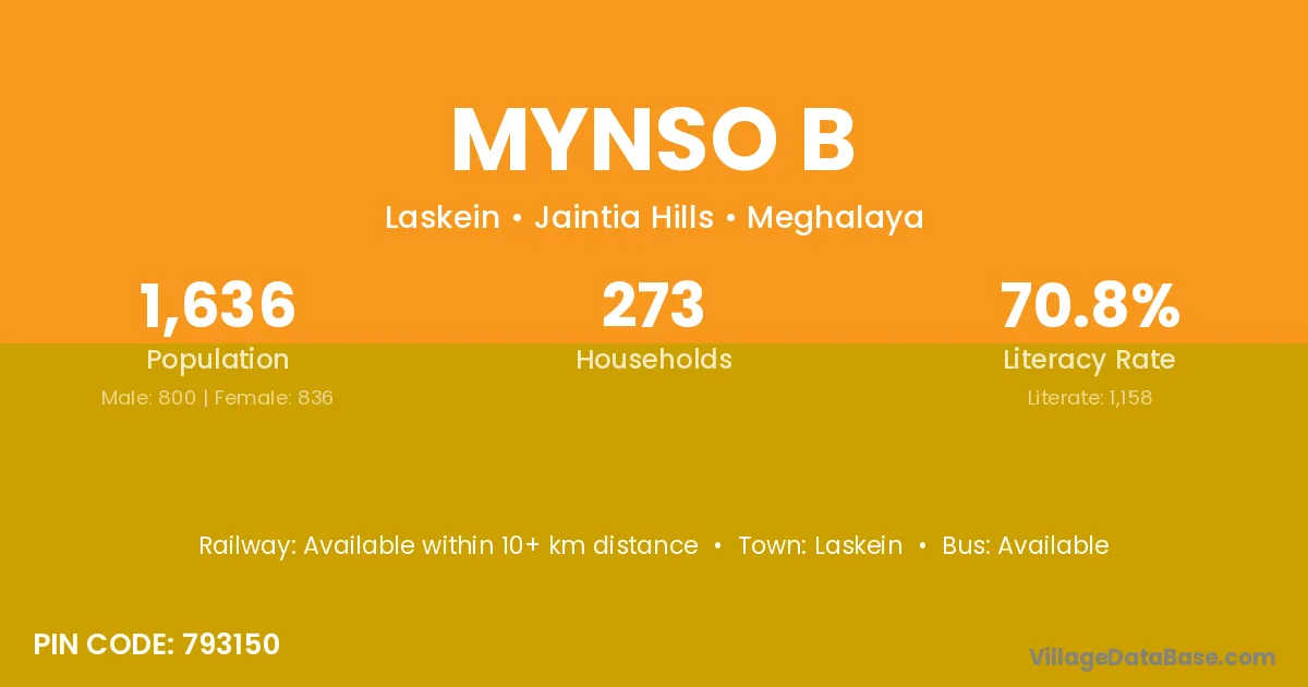 According to Census 2011 information, the village code of Mynso B village is 793150.