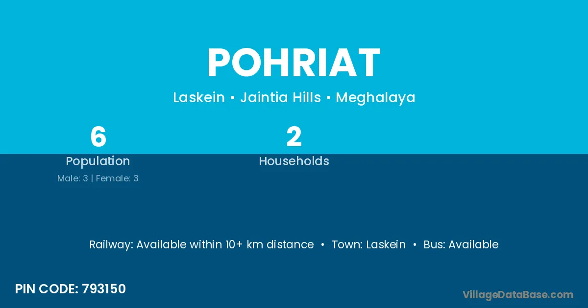 According to Census 2011 information, the village code of Pohriat village is 793150.