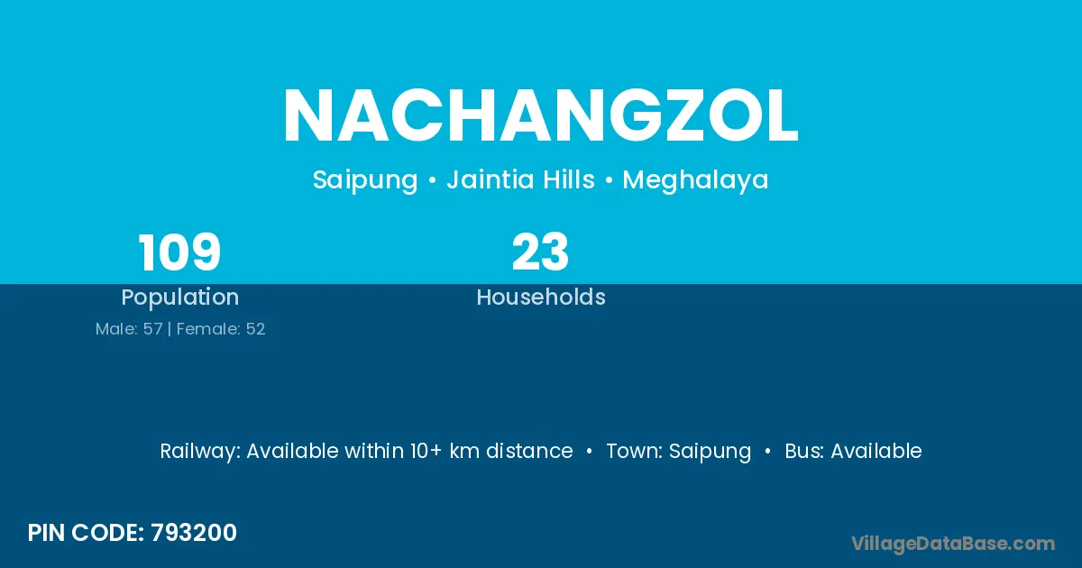 Nachangzol village has a total population of 109 people, of which 57 are males and 52 are females.