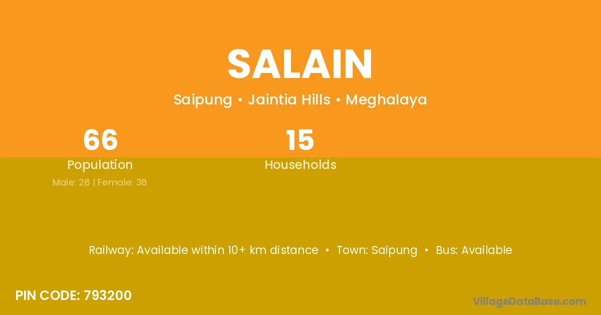 Salain village has a total population of 66 people, of which 28 are males and 38 are females.