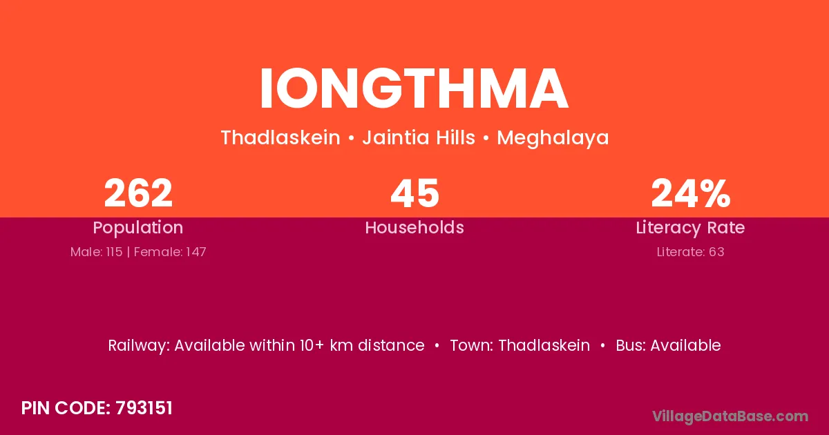 Thadlaskein is the nearest town to Iongthma village for major economic activities