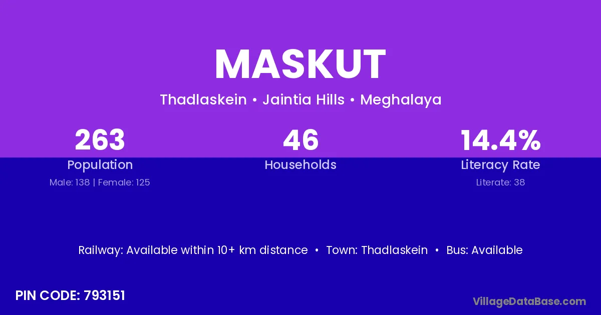 Maskut village has a total population of 263 people, of which 138 are males and 125 are females.