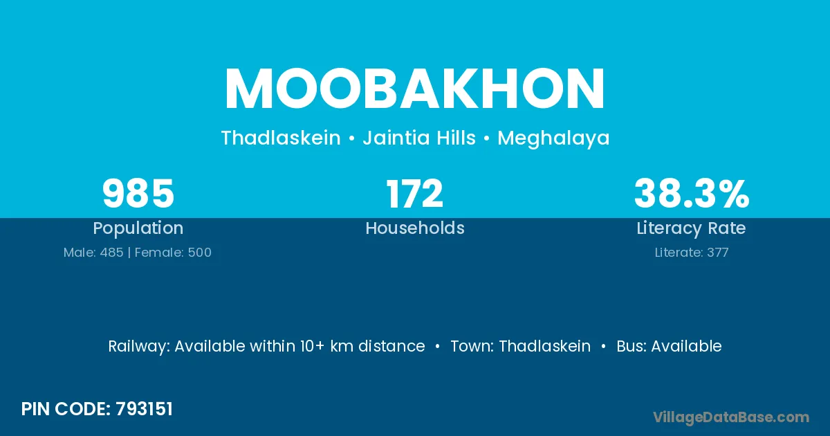 According to Census 2011 information, the village code of Moobakhon village is 793151.