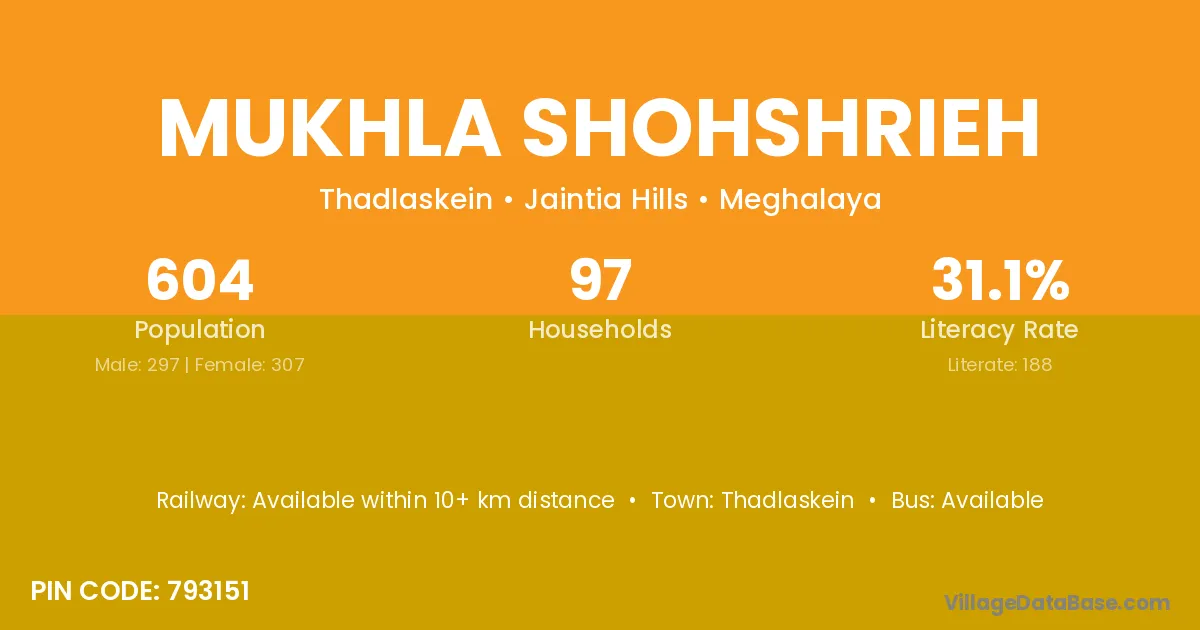 Thadlaskein is the nearest town to Mukhla Shohshrieh village for major economic activities