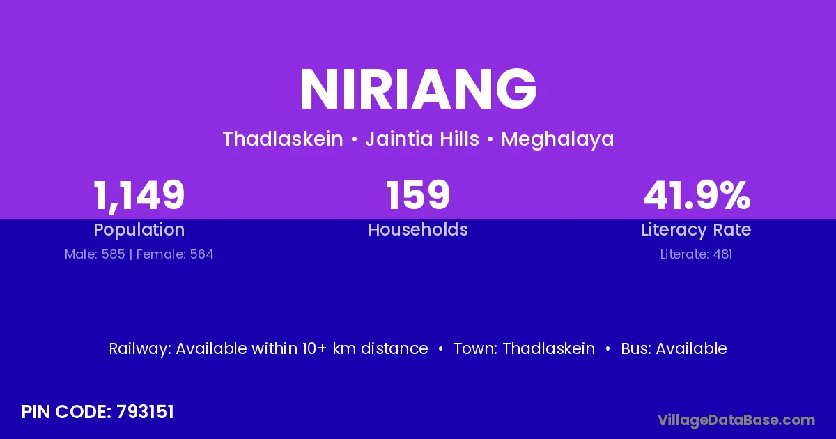 Thadlaskein is the nearest town to Niriang village for major economic activities