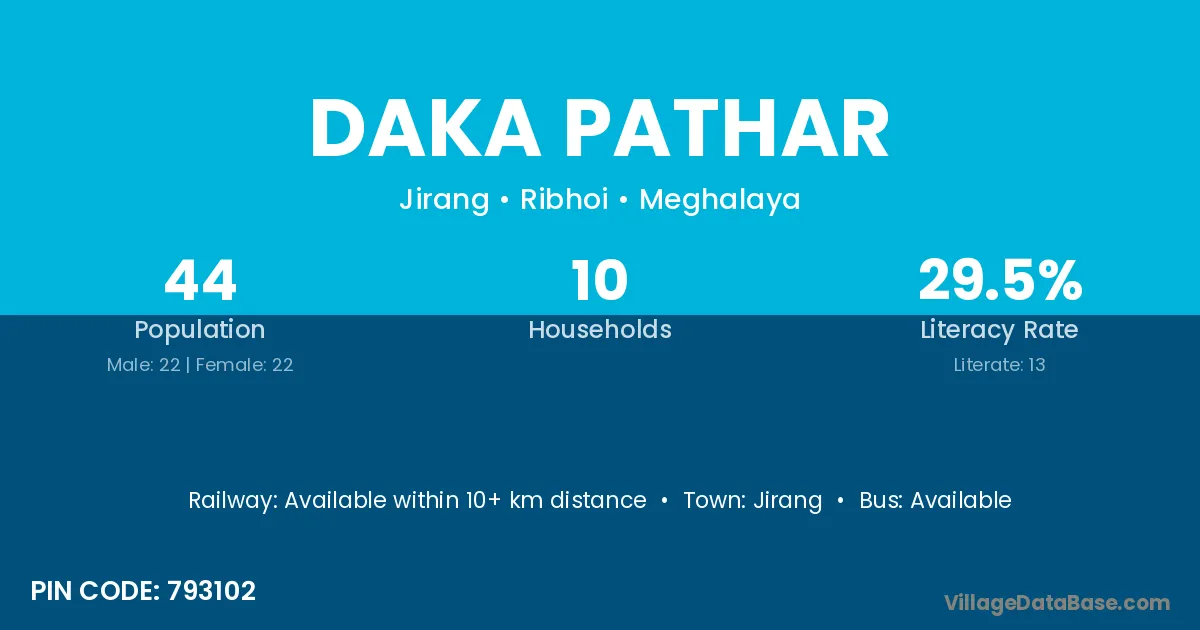 Daka Pathar village has a total population of 44 people, of which 22 are males and 22 are females.