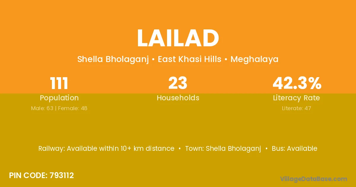 According to Census 2011 information, the village code of Lailad village is 793102.