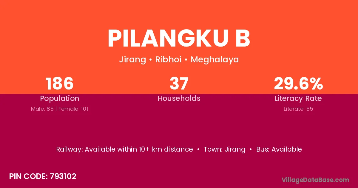 Pilangku B village has a total population of 186 people, of which 85 are males and 101 are females.