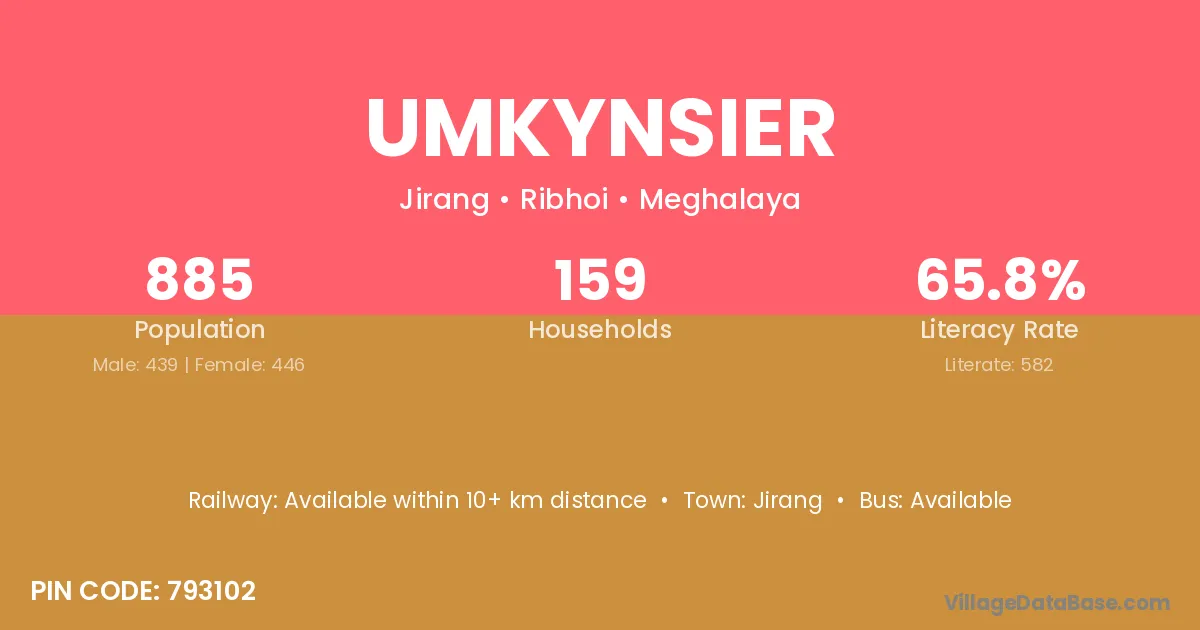 Umkynsier village has a total population of 885 people, of which 439 are males and 446 are females.