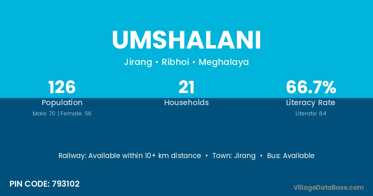 According to Census 2011 information, the village code of Umshalani village is 793102.