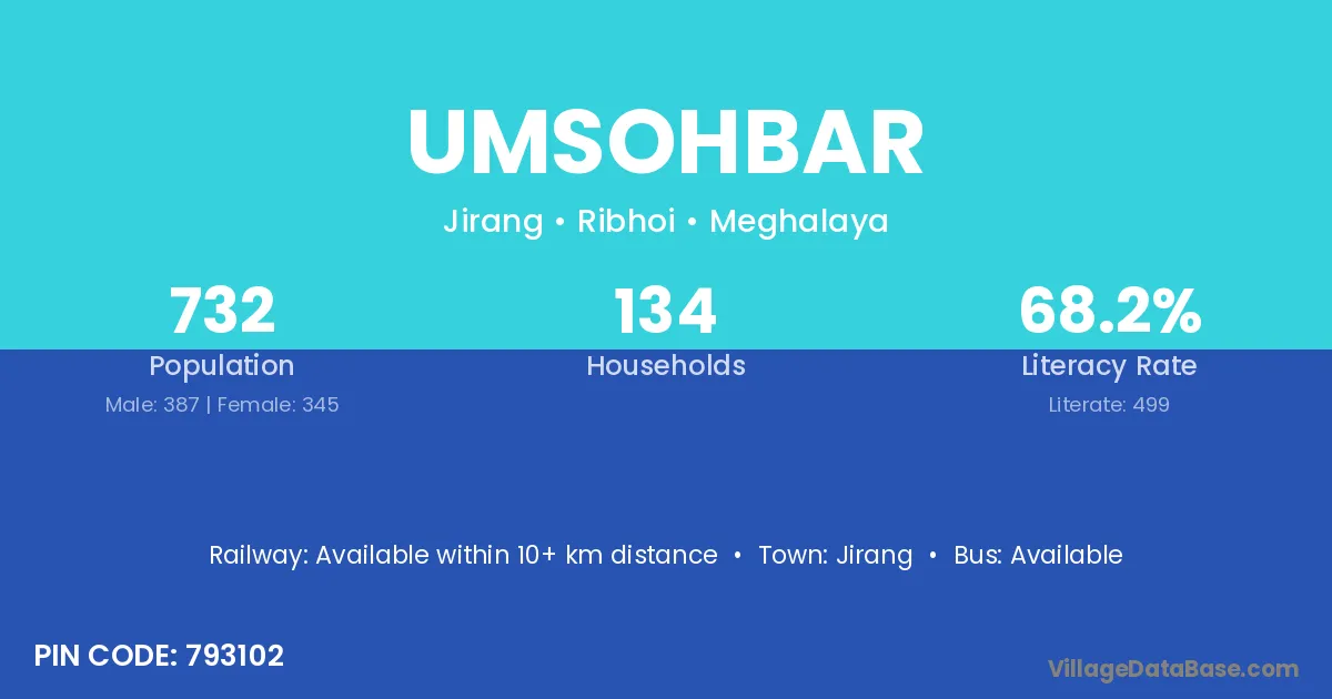 Jirang is the nearest town to Umsohbar village for major economic activities