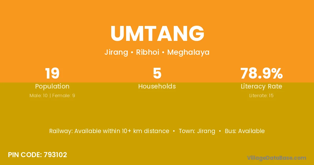 Umtang village has a total population of 19 people, of which 10 are males and 9 are females.