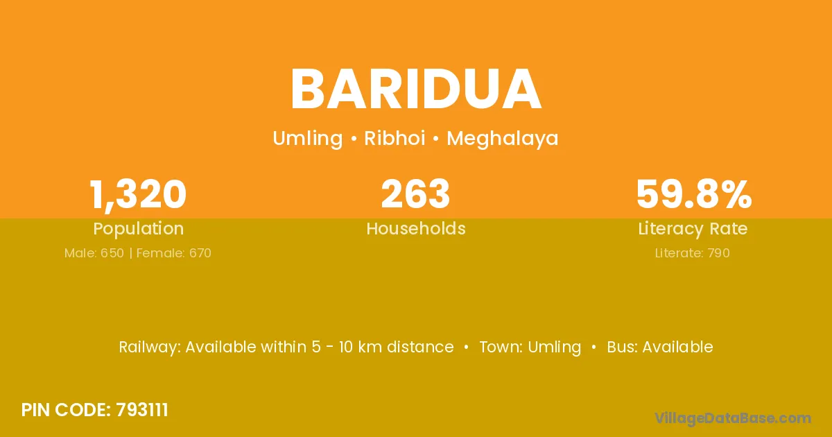 Baridua village has a total population of 1,320 people, of which 650 are males and 670 are females.