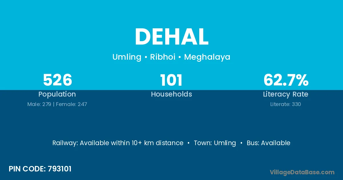 According to Census 2011 information, the village code of Dehal village is 793101.