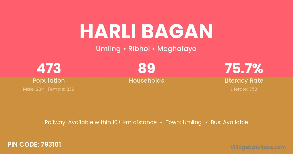 Umling is the nearest town to Harli Bagan village for major economic activities