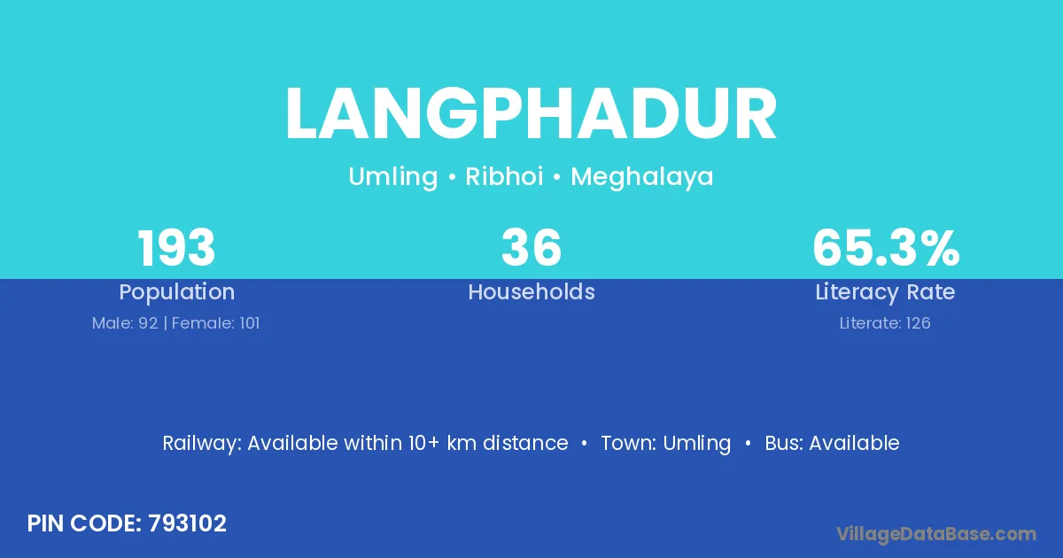 Langphadur village has a total population of 193 people, of which 92 are males and 101 are females.