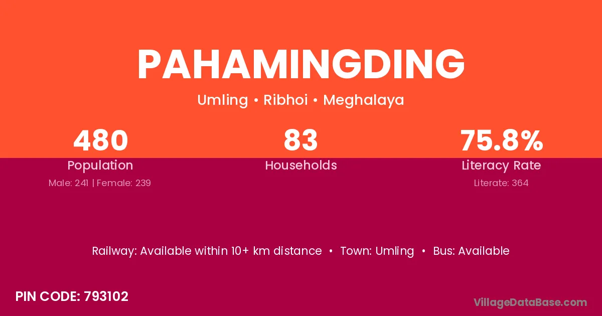Pahamingding village has a total population of 480 people, of which 241 are males and 239 are females.