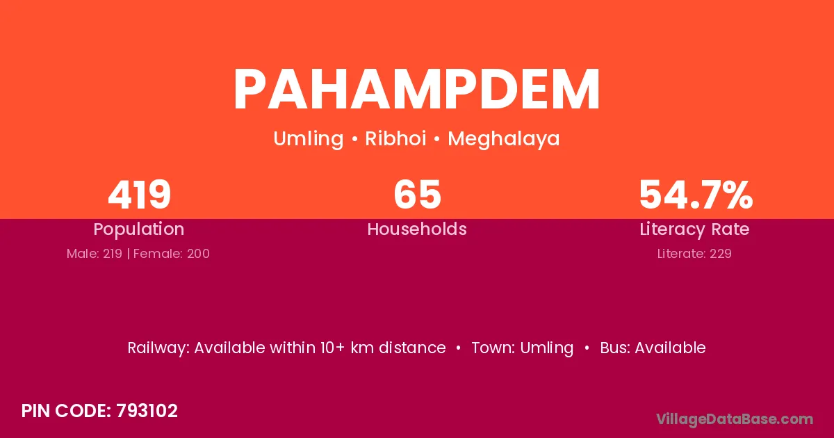Pahampdem village has a total population of 419 people, of which 219 are males and 200 are females.