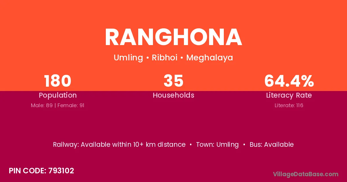 According to Census 2011 information, the village code of Ranghona village is 793102.