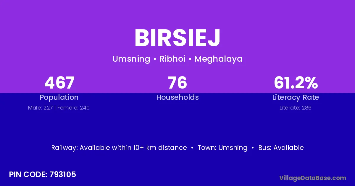 According to Census 2011 information, the village code of Birsiej village is 793105.