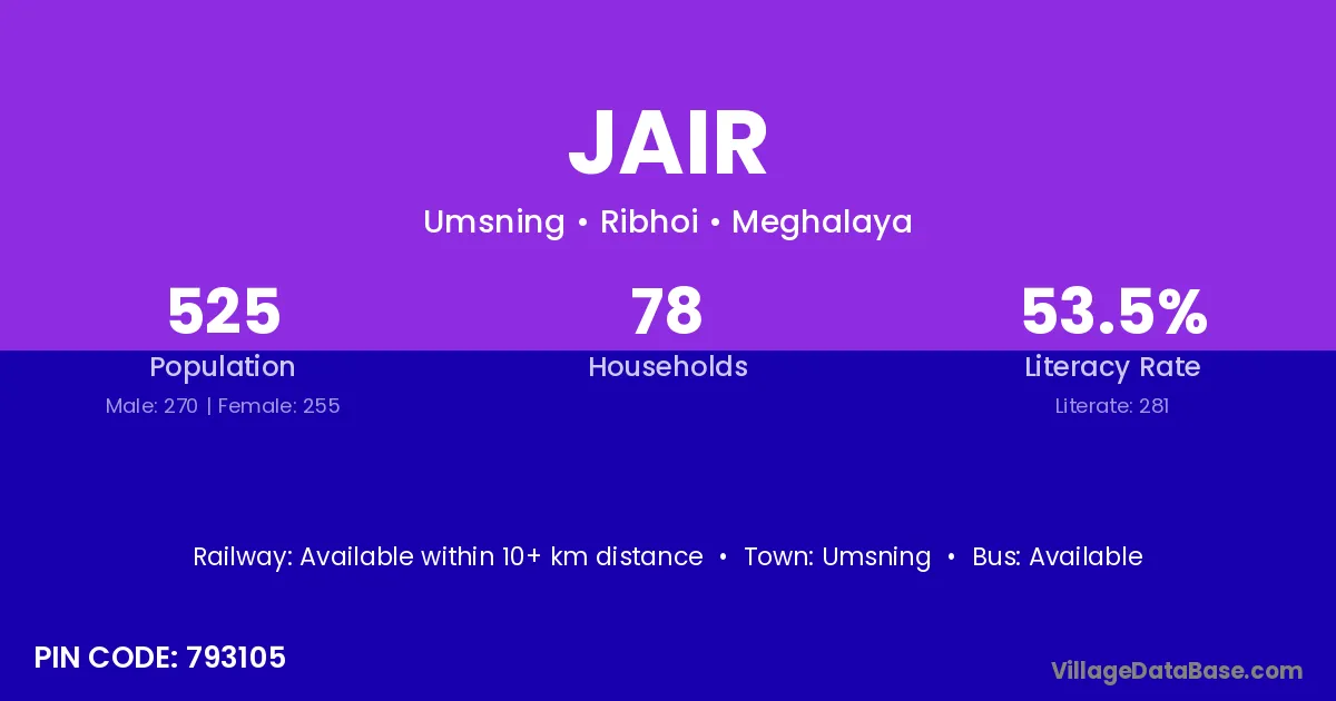 According to Census 2011 information, the village code of Jair village is 793105.