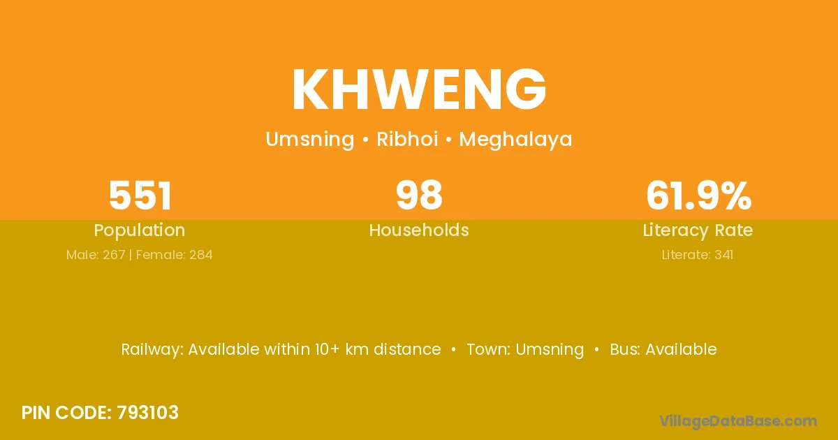 According to Census 2011 information, the village code of Khweng village is 793103.