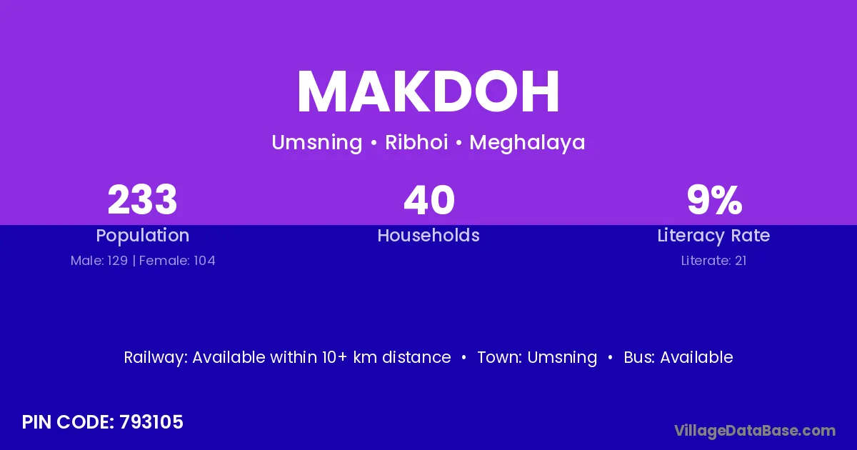 According to Census 2011 information, the village code of Makdoh village is 793105.