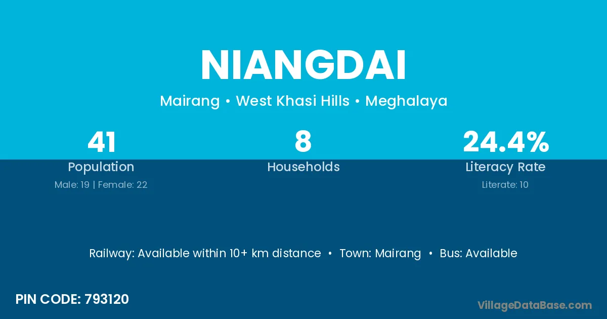 According to Census 2011 information, the village code of Niangdai village is 793105.
