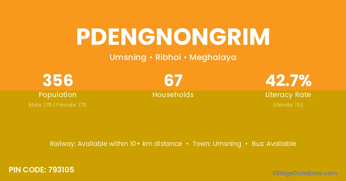 Pdengnongrim village has a total population of 356 people, of which 178 are males and 178 are females.