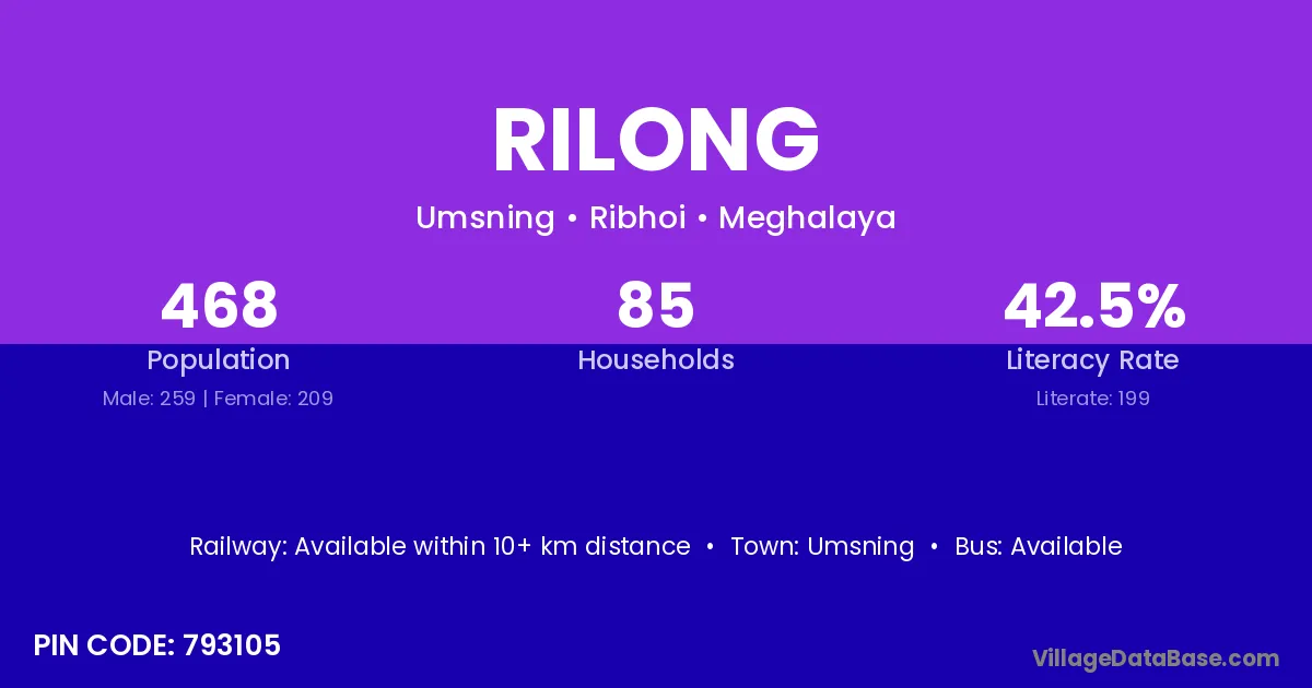 Rilong village has a total population of 468 people, of which 259 are males and 209 are females.