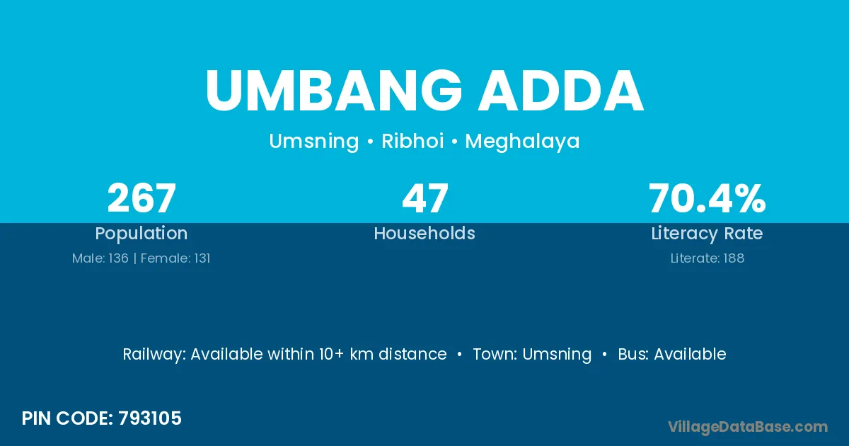Umsning is the nearest town to Umbang Adda village for major economic activities